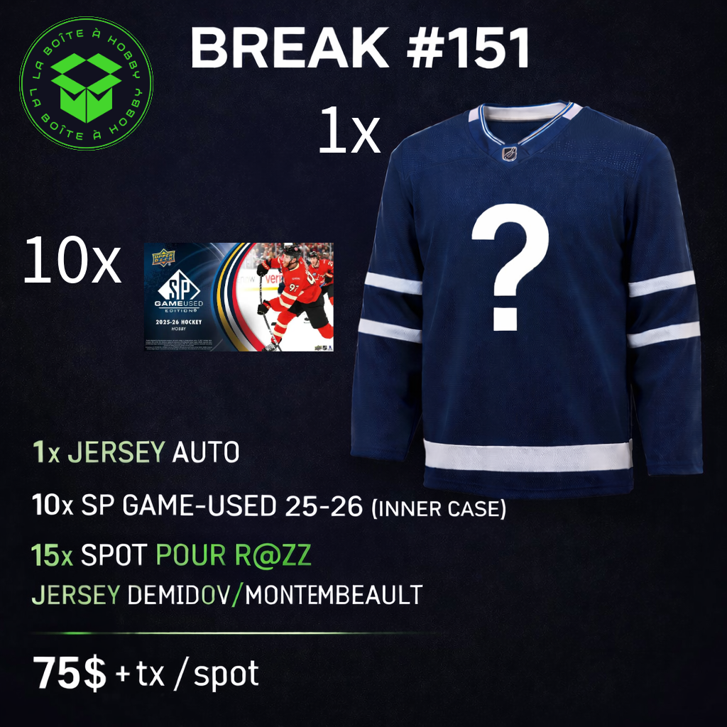 C'est votre première achat sur un break avec nous?! Utiisez le code promo👉break5👈pour 5$ de rabais(spot de 20$ minimum)🙂+Accumulez vos points pour obtenir un futur rabais🎁🤩